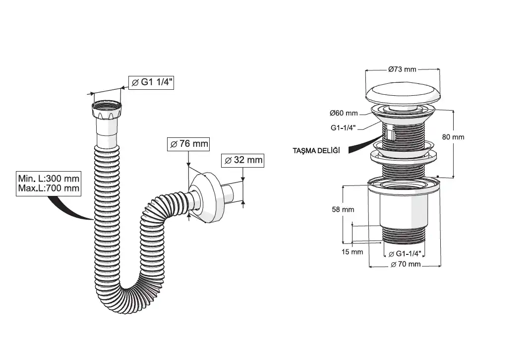 ELİXİR PUP - UP KÖRÜKLÜ SET (MAT BEYAZ - SERAMİK BAŞLIK - TAŞMA DELİKLİ)
