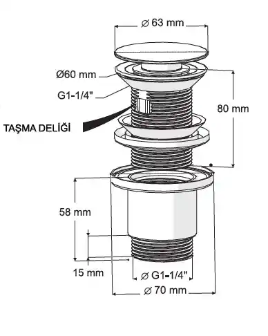 İZYAPI Felix Pup Up Körlü Set - Taşma Delikli Paslanmaz Başlık | Pop-Up Sifon ve Taşma Yüzükleri