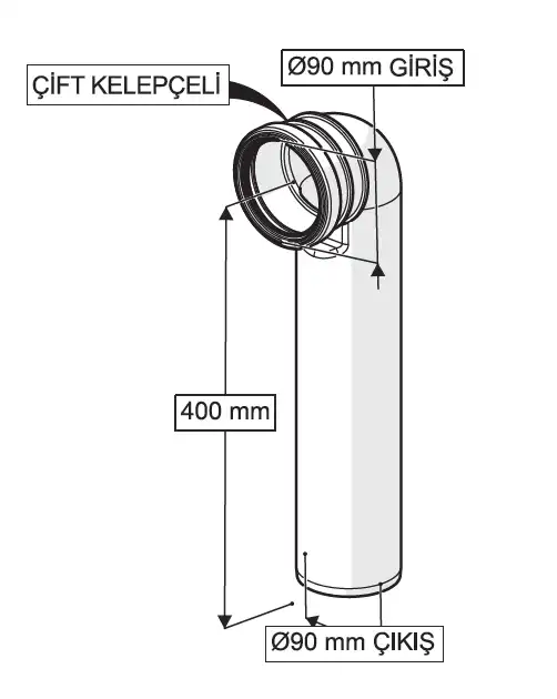 GÖMME REZERVUAR ÇİFT KELEPÇELİ PİS SU ÇIKIŞ DİRSEĞİ (Q90 X 450 mm)
