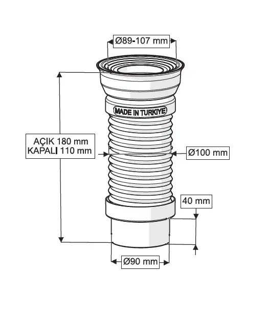 GÖMME REZERVUAR KÖRÜKLÜ PİS SU ÇIKIŞ BORUSU (Q90 X 180 mm)