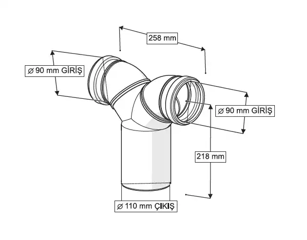 GÖMME REZERVUAR PİS SU ÇATAL DİRSEĞİ (Q90-90-110 X 260 mm)