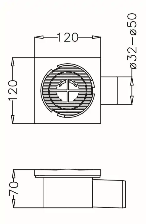 JAPAR - 12x12 Döner Başlıklı Yer Sifonu (Ø50-Ø32 Adaptörlü)