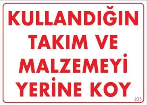 Kullandığın Takım ve Malzemeyi Yerine Koy Uyarı Levhası 25x35 KOD:233