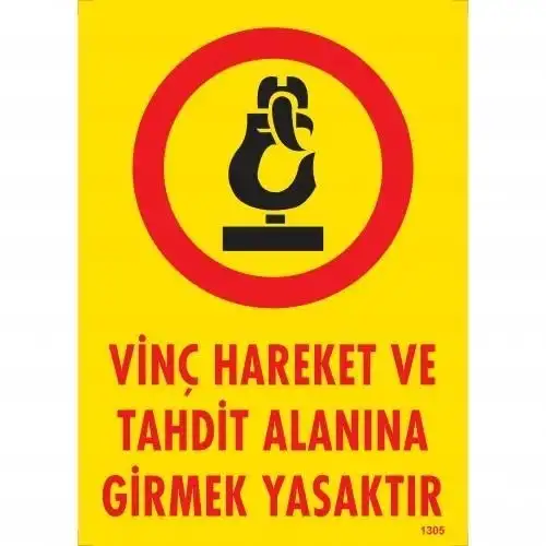 Vinç Hareket Ve Tahdit Alanına Girmek Yasaktır Levhası 25x35 KOD:1305