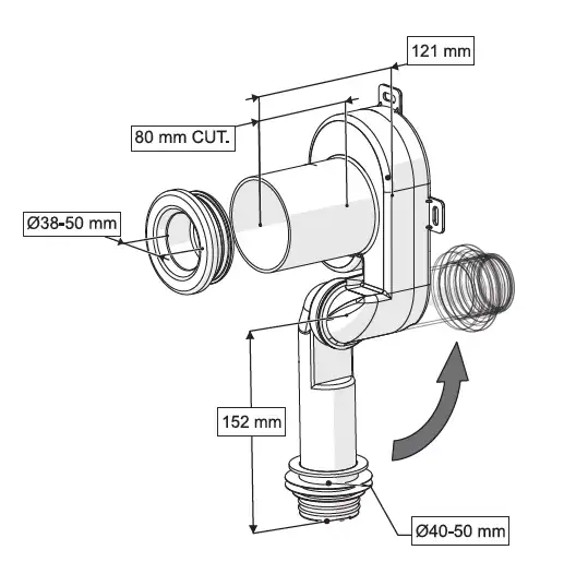 YATAY DÜŞEY FONKSİYONLU PİSUAR SİFONU Q40 / 50 mm ÇIKIŞLI